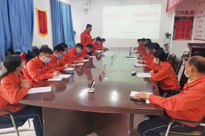 沧州大化集团公司团委书记积极深入一线组织召开团干部培训班、团干部研讨会,通过团委书记主讲、团干部深入研讨等方式,强化团干部对党的二十大精神核心要义的深刻领会和全面把握,做好学习宣贯党的二十大精神的表率。沧州大化集团公司团委还组织开展团员青年读书会,从党的奋斗历程中汲取前进力量。