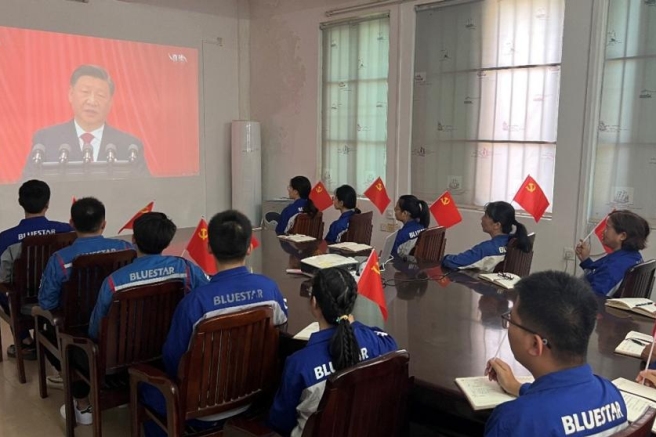 蓝星公司党委第一时间召开党委会议及党委理论学习中心组集中学习研讨,认真传达学习党的二十大精神,并就下一步学习宣传贯彻工作作出安排部署,要求公司全体干部职工把深入学习宣传和贯彻落实党的二十大精神作为当前和今后一个时期的首要政治任务,深刻领会精神实质,准确把握核心要义,推动党中央决策部署更好转化为生产经营的生动实践。蓝星公司中英文刊物开设“学习二十大 奋进新征程”系列专栏,向海内外企业传达党的二十大精神,号召青年党员干部、基层先进典型等各级代表联系工作实际畅谈学习感悟,持续营造浓厚学习氛围。公司各级党组织通过党委理论学习中心组、“三会一课”等形式组织党员开展主题研讨,集中精力完成好全年各项目标任务,认真思考谋划下一阶段蓝星公司总体工作,全力推动党的二十大各项重大部署落实落地,以更加昂扬奋进的姿态奋进新征程、建功新时代。